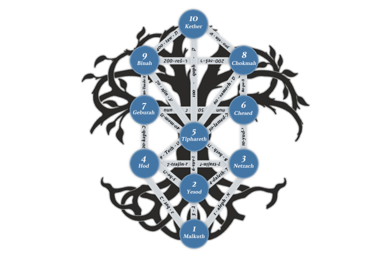 The Tree is divided into three pillars: the Pillar of Severity (left), the Pillar of Mercy (right), and the Pillar of Balance (center).